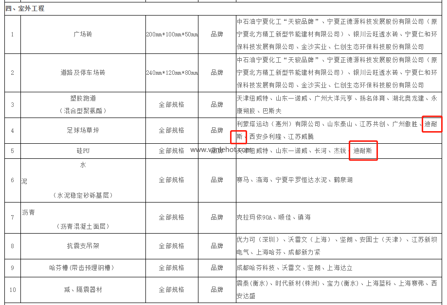 中星體育旗下自有品牌Dynice迪耐斯品牌地材也因自身過硬的材料質量和良好的市場口碑,入選《銀川市代建局建筑材料品牌及質檢機構名錄(2018年)》。部分文件附示: